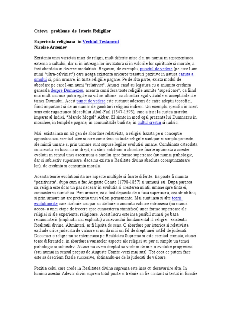 Noi trebuie să dăm mărturie cu. Constitue de fapt ceea ce în înțeles propriu se numește legea mozaică sau legea veche fiindcă din ea rezultă cel mai bine rolul specific și scopul pedagogic pe care l a avut vechiul testament. Experienta religioasa in vechiul testament nicolae arseniev existenta unei varietati mari de religii mult diferite intre ele nu numai in reprezentarea externa a cultului dar si in intreaga lor invatatura si in valorile lor spirituale si morale a fost abordata in diverse modalitati. Prin legea ceremonială se urmărea pregătirea internă a poporului evreu pentru opera mântuirii prin iisus hristos.