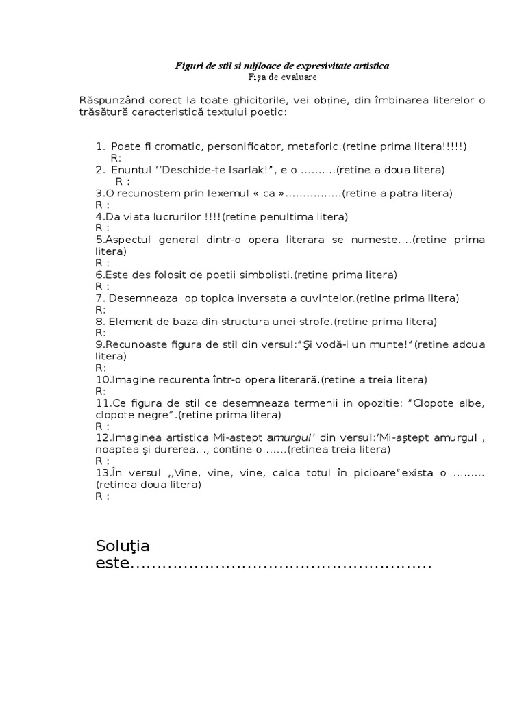 27 ianuarie 2010 18 54. Resurse educationale online pentru elevii de clasa a vii a. Testul verifica notiunile despre figurile de stil. De la 1 la 20 din 13 total pagini 2.