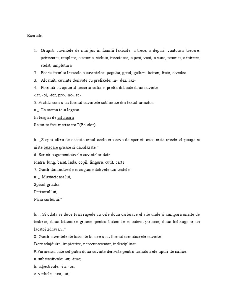 Lexicale când formează cuvinte noi. Derivarea cu prefixe prefixele sunt sunetele sau grupul de sunete adăugate înaintea rădăcinii pentru a forma un cuvânt nou. Formeaza cuvinte cel putin cate doua exemple derivate cu urmatoarele tipuri de sufixe. Derivarea cu prefixe derivarea cu sufixe derivarea parasintetica.