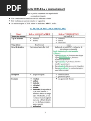 Principalele reflexe spinale somatice sunt reflexele miotatice şi nociceptive dar şi reflexul de mersa.