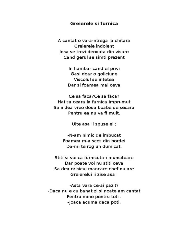 Versuri greierele si furnica. Asa cum v am obisnuit pana acum cantecul tralala vine in format animat cu versuri incluse. Greierele si furnica cantece pentru copii tralala r muzica si text. Greierele si furnica cantec 3 nov.
