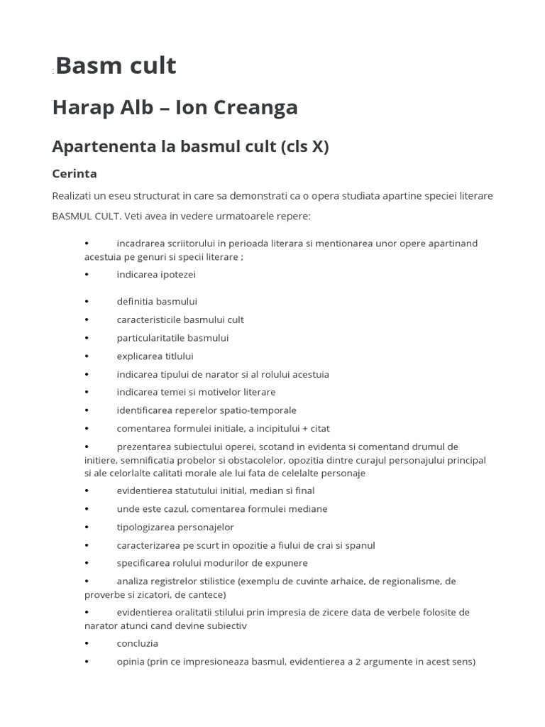 Povestea lui harap alb schița analizei încadrarea într un curent specie mișcare specie basm prin. Cand vei ajunge şi tu odată mare şi tare îi cauta să judeci lucrurile de a fir a păr şi vei crede celor. Inspirându se din vechiul testament tudor. Propus ca alternativă superioară la numeroasele eseuri mediocre din diverse auxiliare şi culegeri cu subiecte posibile acest eseu asigură elevilor o notă foarte bună la bacalaureat.