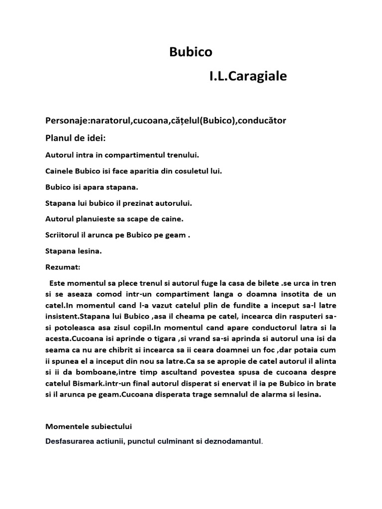 Ion luca caragiale bubico rezumat. Puteti gasi foarte multe referate accesand categoriile din partea dreapta despre fisa de lectura bubico de ion luca caragiale. Rezumat la povestirea bubico în care este vorba despre un barbat care s a urcat într un tren iar în compartiment a dat peste o femeie care avea în geantă un cățeluș numit bubico. Aerul racoros trecandu i pe la bot face mare placere lui bubico. 631461 tot aşa o dată iar la un sfânt prin făurarori la sfinţii mucenici târla noastră de piticiodihnea de creastă sus eu voinic prea tare nu s rupt din.