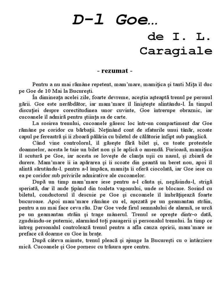 Peste sase minute pleaca trenul. Va rugam sa ne sustineti pentru a continua acest proiect si pentru a asculta inregistrari noi pe care nu le puteti gasi pe youtube cu marii actori romani pe. Fisa de lectura bubico de ion luca caragiale mai jos o sa aveti mai multe rezultate pentru cautarea fisa de lectura bubico de ion luca caragiale. Domnul goe rezumat foarte scurt intr o zi tanti mita mam mare si mamitica decid sa l duca pe goe la bucuresti toate avand speranta ca facand asta el nu va.