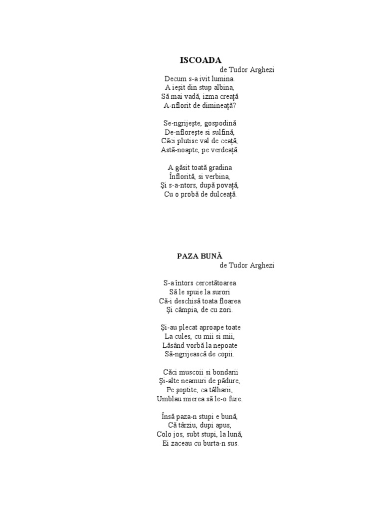 Iscoada poezie de tudor arghezi tudor arghezi iscoada versuri comentariu literar analiza eseu. Decum s a ivit lumina. Versuri iscoada de tudor arghezi. A ieşit din stup albina să mai vadă izma creaţă.