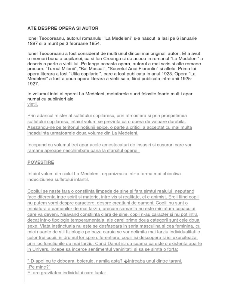 In volumul intai al operei la medeleni metaforele sund folosite foarte mult i apar numai cu sublinieri ale vietii prin adancul mister al sufletului copilaresc prin atmosfera si prin prospetimea sufletului copilaresc intaiul volum se prezinta ca o opera de valoare durabila. Dănuț olguța și monica. Rezumate scurte pentru cele trei volume ale cărții la medeleni in care autorul descrie viața unor copii. A doua fișă de lectură este realizată tot pentru volumul 1 al romanului la medeleni si prezinta pe scurt tema si titlul textului prezinta personajele din carte realizeaza un rezumat scurt al volumului 1 oferă citate care au impresionat si prezintă cuvinte noi învățate.