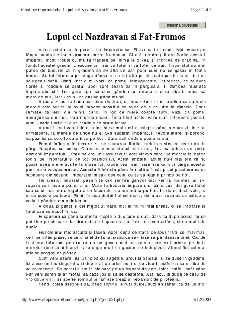Lupul cel nazdravan si fat frumos 20 38 min 4 99 lei un imparat avea trei copii si langa palatul sau avea o gradina frumoasa in care crescuse un mar cu mere de aur.