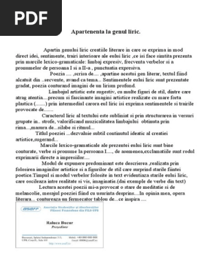 Marci lexico gramaticale ale genului liric. 285 din 2004 prin oug nr. Mărcile lexico gramaticale surprind subiectivitatea eului liric implicarea directă prin diverse mijloace lexicale și. Eul liric reprezintă vocea scriitorului în operele care aparțin genului liric prin care se transmit în mod direct gânduri sentimente trăiri care pot fi intentificvate la nivelul mărcilor lexico gramaticale. 8 din 1996 privind dreptul de autor şi drepturile conexe a fost modificată semnificativ prin legea nr.