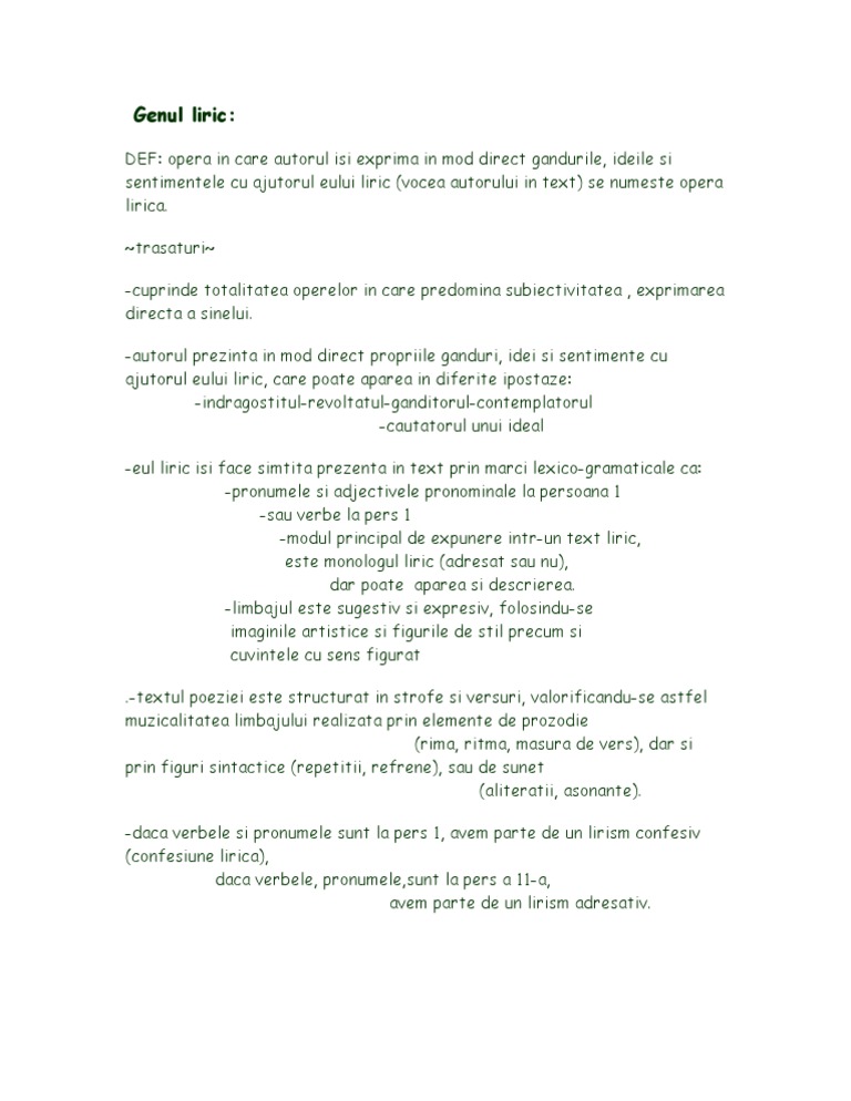 Eul liric este vocea autorului în operele aparținând genului liric și poate fi identificat la nivelul mărcilor lexico gramaticale. Marcile lexico gramaticale ale prezentei eului liric in textul poetic sunt verbe si pronume la persoana i singular si plural si la a ii a singular dativul etic valoarea afectiva a unor derivate lexicale diminutive augmentative substantivele la cazul vocativ superlativele stilistice ale adjectivului topica afectiva. Eşti pe cale să postezi un mesaj care poate încuraja pirateria şi distribuţia ilegală de materiale pe internet. Imagini artistice vizuale auditive dinamice olfactive si figuri de stil epitete metafore comparatii etc.