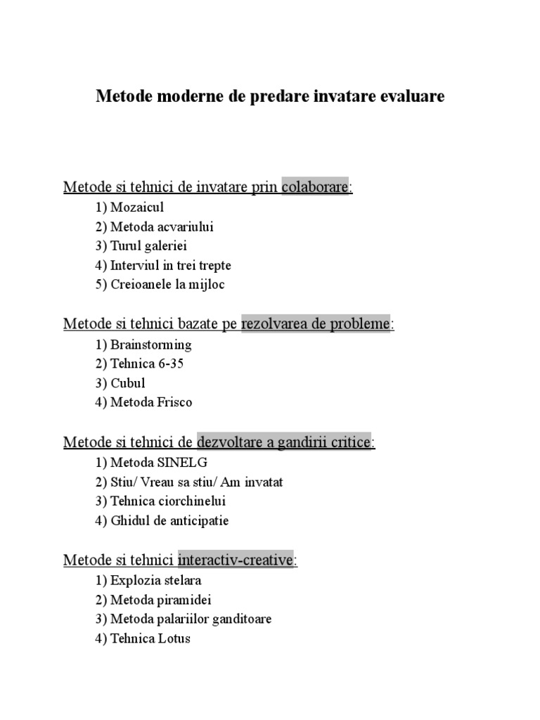 In romania la momentul actual in pofida declaratiilor constante ale autoritatilor prin care isi exprima de peste douazeci de ani dorinta de reformare a sistemului de invatamant totul pare sa fi ramas incremenit intr o structura inertiala rupta cvasitotal de realitatea imediata. Curs metode interactive de predare învăţare evaluare. După criteriul suportului purtător de informații avem. Evoluţia societăţii în ansamblul.