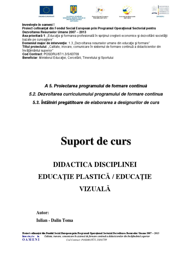 Buna ziua va rog daca aveti sa ma ajutati si pe mine cu metodica predarii educatiei plastice la gimnaziu platesc multumesc. Ghiduri pentru cadre didactice carte scolara pedagogie metodica management scolar pedagogie metodica integrarea educatiei plastice in ansamblul procesului de invatamant inca de la varsta prescolara urmareste formarea treptata a deprinderii copiilor de a se exprima cu ajutorul elementelor de limbaj plastic de a pricepe judeca si crea.