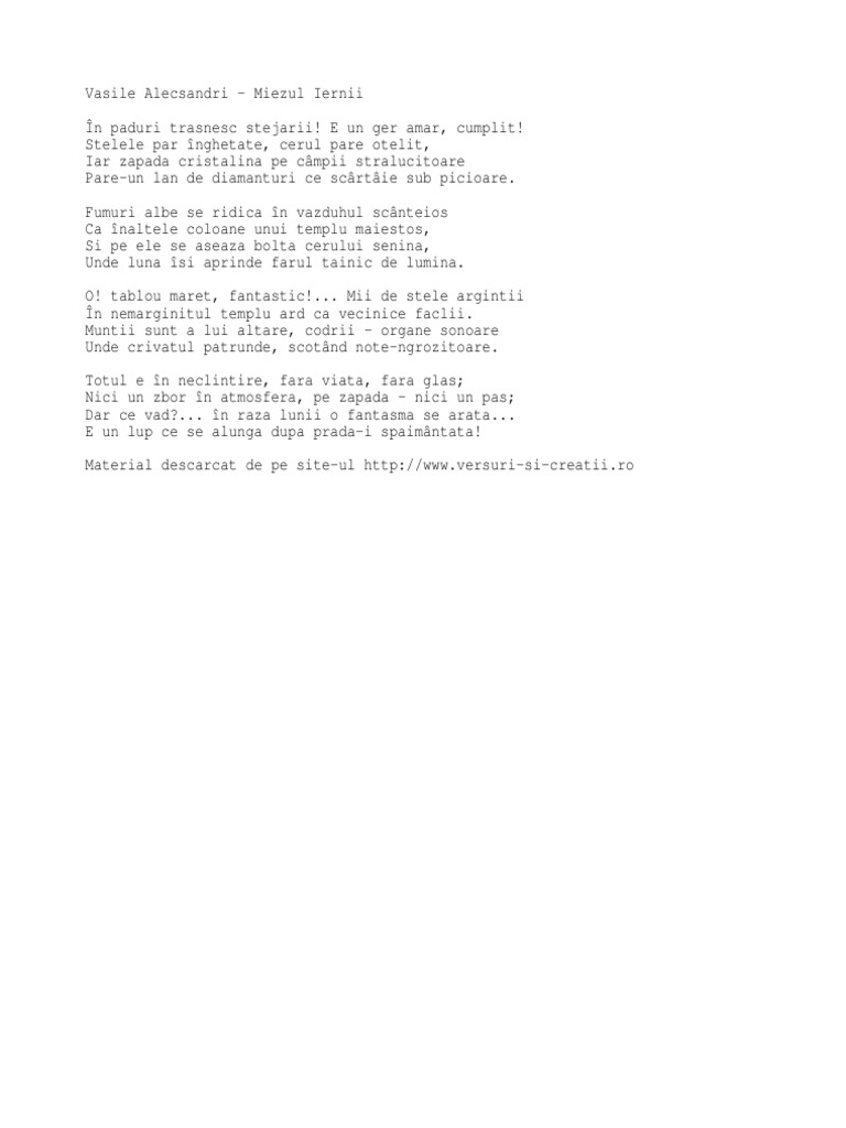 Unsubscribe from mega hits. Prin acest ciclu de poezii ale senzo rialităţii şi ale relaţiei nemijlocite cu natura vasile alecsandri impune o nouă specie în literatura română. Miezul iernii de vasile alecsandri mega hits. E un ger amar cumplit.