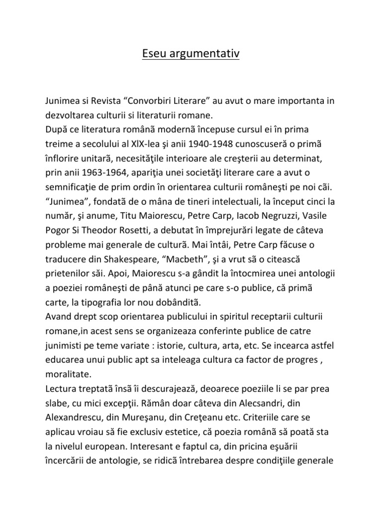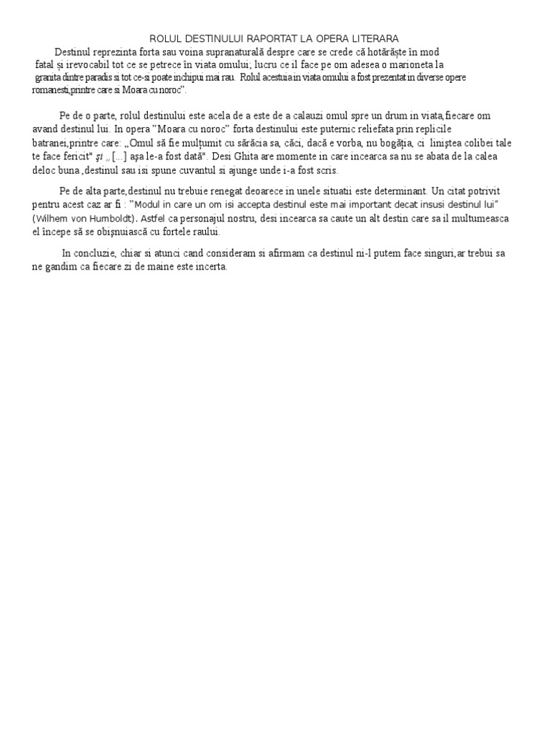 Moara Cu Noroc Eseu Argumentativ
