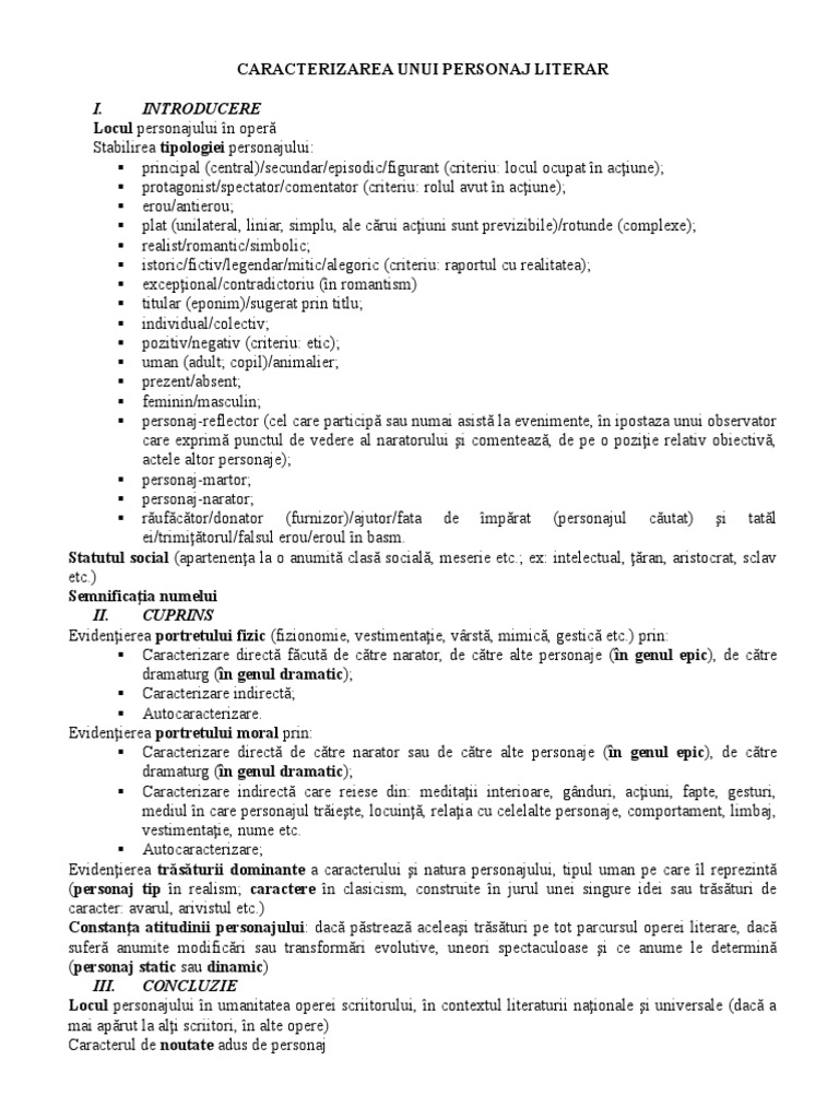 Modalitati de caracterizare a personajelor. Modalităţile de caracterizare a acestuia depind de forma şi de structura textului sunt dependente de câteva criterii între care mai importante sunt. Pe această pagină vei găsi informații despre fiecare tip de caracterizare astfel că dacă la subiectul ii al examenului de bacalaureat la limba și literatura română ți se va cere să prezinți modalitățile de caracterizarea a unui personaj vei ști exact cum să formulezi un răspuns corect cu care vei obține rezultatul dorit. După raportul cu realitatea.