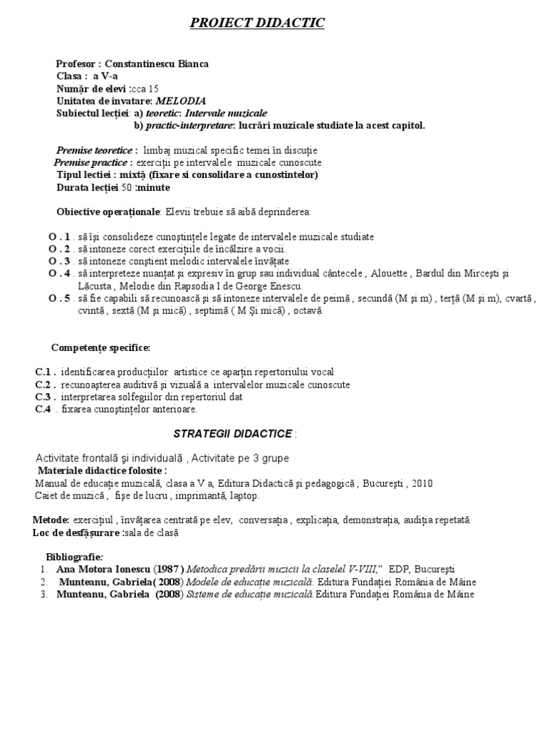 Se evalueaza elementele de limbaj muzical si ritmul muzical. Cursuri şcoala online cursuri online primar cursuri online gimnaziu cursuri online liceu profesorul la clasă ghid practic de pedagogie resurse educaţionale interactive revista cadrelor didactice evenimente diplome pentru evenimente. Model de proiect de lungă durată la disciplina educație muzicală clasa a ii a anul de studii 2019 2020 atenție. 0 stele 0 review uri.