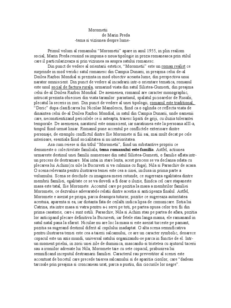 Actiunea morometii conflicte morometii morometii comentariu literar bac morometii eseu bac morometii eseu demonstrativ bac morometii marin preda eseu morometii monolog morometii personaje morometii stilul artistic morometii tema si viziunea despre lume scena cinei morometii taierea salcamului morometii post navigation. El este un continuator al romanului de tip rural inceput de liviu rebreanu dar aduce o viziunea proprie asupra acestei tematici. Viziunea despre lume în romanul ion stă sub semnul concepţiei despre literatură a lui liviu rebreanu. Reprezentativ pentru perioada postbelica este romanul lui m.