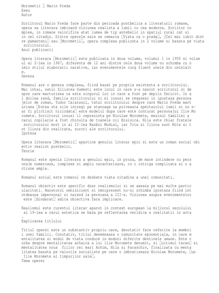 Morometii Eseu Tema Si Viziunea