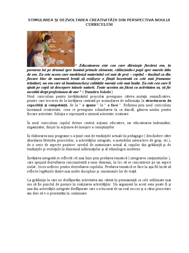 Noul Curriculum Pentru Invatamantul Prescolar 2019