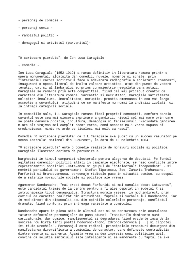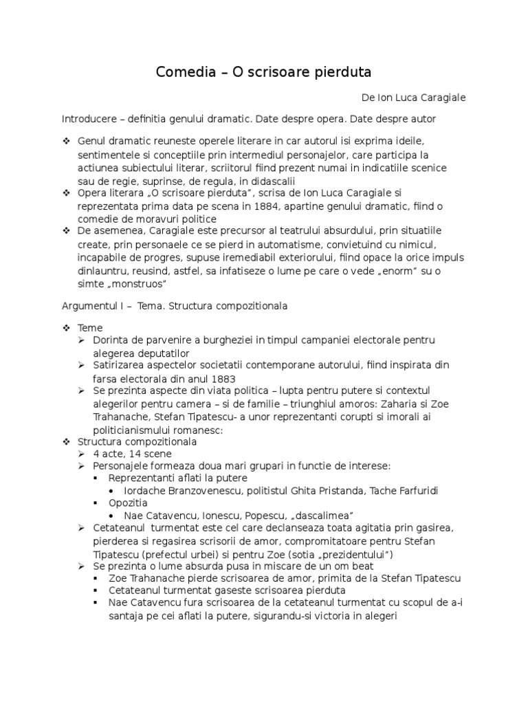 O scrisoare pierduta explicarea tiltului. Pentru trasaturile genului dramatic vezi aici. în elaborarea eseului vei respecta structura textului de tip argumentativ.