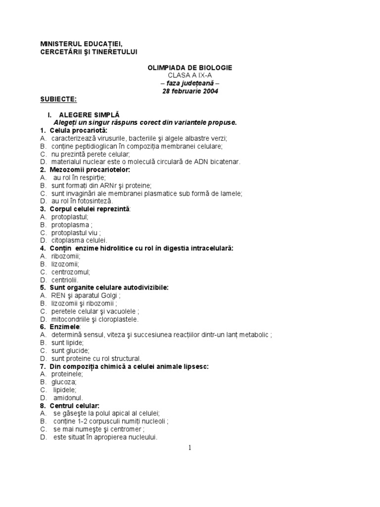 Olimpiada nationala de biologie 2017 baia mare. Olimpiada de biologie clasa a ix a faza judeţană 19 03 2011 1 olimpiada de biologie faza judeţeană 19 martie 2011 clasa a ix a subiecte. Inspector biologie chimie data. Barem proba teoretica xii.