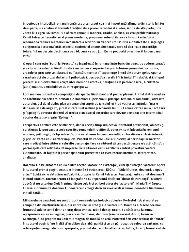 Academia edu is a platform for academics to share research papers. Petrescu patul lui procust comentariu. Indiferent de personajul ales în redactarea caracterizărilor vei avea în vedere stabilirea tipologiei personajelor principal secundar masculin feminin individual colectiv precum și modalitățile de caracterizare a acestora directă indirectă. Patul lui procust un comentariu feminist patul lui procust este un roman scris de camil petrescu și publicat în anul 1933.