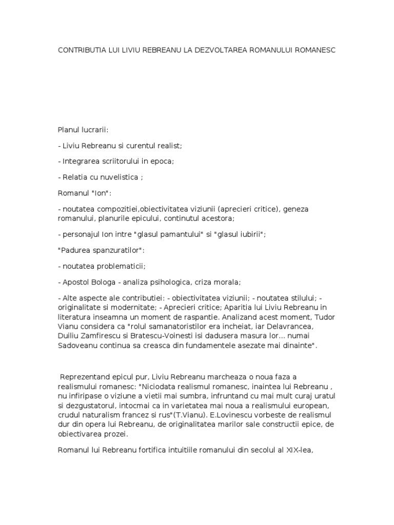 Academia edu is a platform for academics to share research papers. Personajele din ion de liviu rebreanu referate personajele din ion de liviu rebreanu ion personaj principal realist exponent si individualitate. Respectul pentru adevăr de unde reiese obiectivarea și realismul romanului. In 1920 rebreanu published his novel ion the first modern romanian novel in which he depicted the struggles over land ownership in rural transylvania.