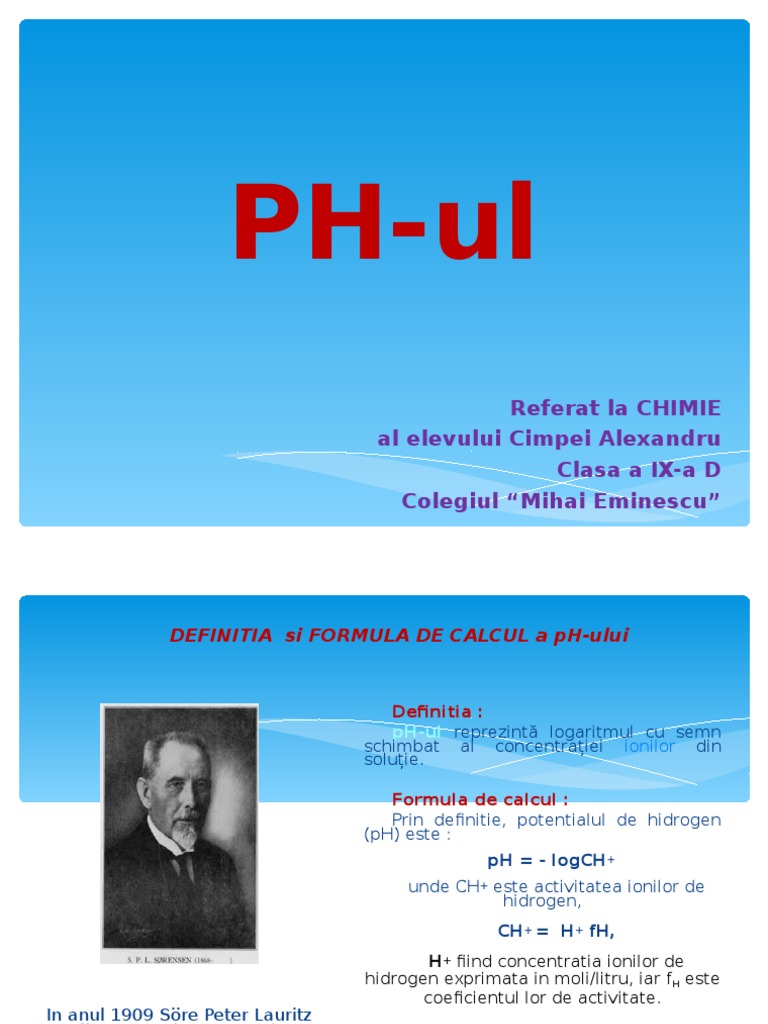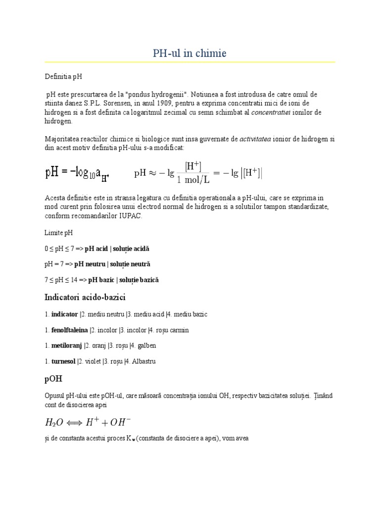 Acasa referate chimie ph ul. Valorile 1 7 corespund solutiilor acide iar valorile 7 14 corespund solutiilor bazice. Acasa referate chimie ph ul. Dar dacă ești elev în clasa a ix a știi că în cadrul orelor de chimie vei studia despre ph ul soluțiilor apoase sau chiar vei primi ca și temă de casă să realizezi un referat cu această temă.