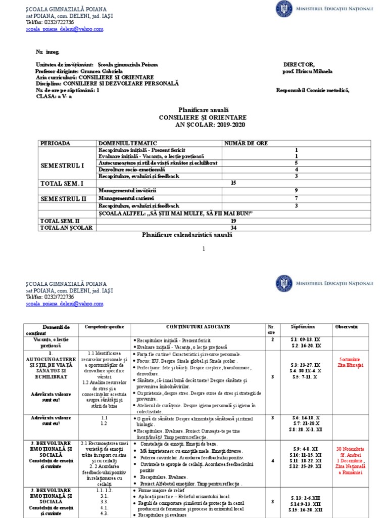 Planificare dirigentie clasa 5. Planificarea calendaristică anuală pentru clasa a x a. Microsoft word planificare consiliere litera doc author. Juliana gherghe scoala gimnaziala nr 1 costesti. Planificarea calendaristică anuală pentru clasa a ix a.