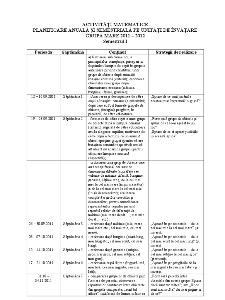Planificare pe unitati de invatare grupa mare. Planificare activitati matematice grupa mare. Materiale pentru domeniul ştiinţă dş. Propun o planificare pentru grupa mare completa tura 1 tura 2 propun o planificare pentru grupa mare completa tura 1 tura 2. Proiectare pe unitati de invatare.