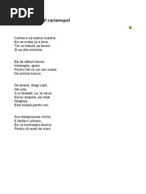 Poezia cartea de virgil carianopol. Ea ne nvaţă ce e bine. Ea ne nvaţă ce e bine tot ce trebuie să facem și să ştie orişicine. Cartea e ca mama noastră. Are nţelepciunea veche e făclie n univers.