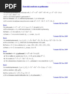 Polinoame exercitii rezolvate m1. X1 x2 x3 5. Prea mic textul pe mobil. Download exercitii rezolvate cu polinoame. Cartea este destinat a ˆın primul studen tilor masteranzi s i profesorilor de matematica parcurgerea ei necesit and familiaritate cu noˆ tiunile s i.