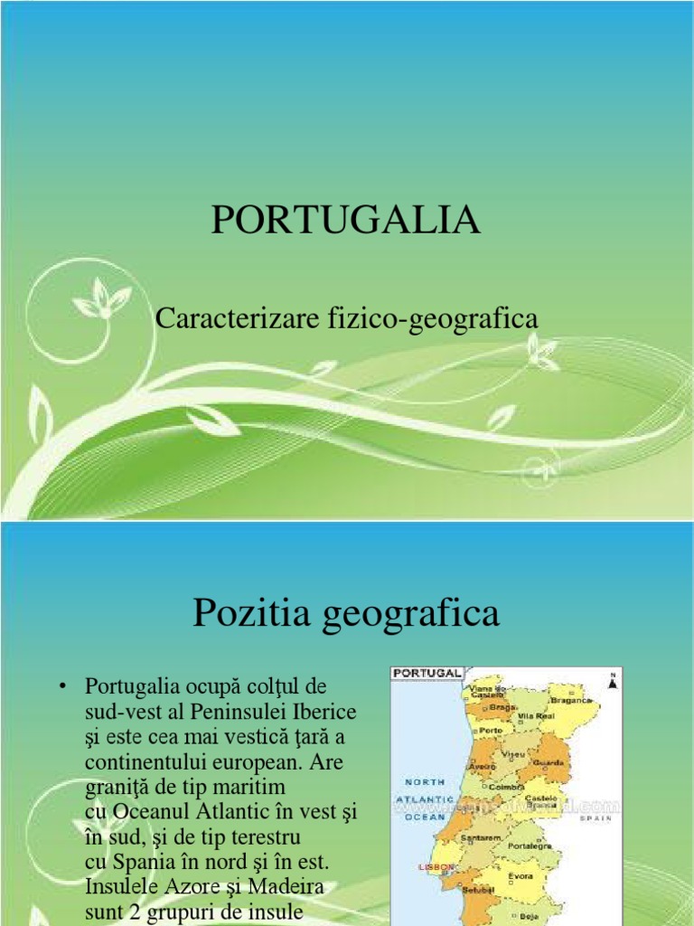 Principale unităţi de relief. Portugalia sau republica portugheză după denumirea oficială este un stat situat în europa meridională întemeiat în anul 1143 care ocupă o suprafaţă totală de 92 212 km 2 partea continentală este situată în extrema sud vestică a peninsulei iberice având granița de nord și est cu spania și oceanul atlantic la vest și sud. 1249 e n în urma cuceririi de către califatul umayyad a peninsulei iberice în 711 e n. După înfrângerea vizigoților în doar câteva luni califatul.