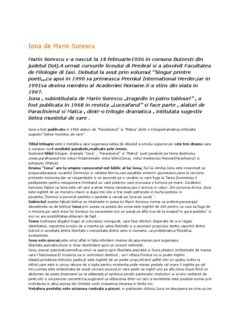 Poezia povară de marin sorescu o carte mică n am luat cu mine decat o carte subțire așa ca o frunză. în 1966 primește premiul uniunii scriitorilor pentru volumul poeme reușind să repete această performanță de încă 5 ori pe parcursul carierei sale. Oi sani ai naturii mame. M am gândit c o să mă doară spinarea.