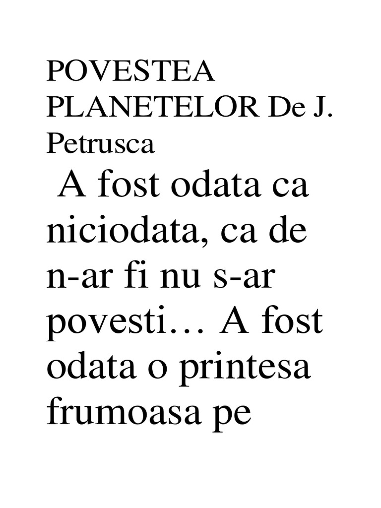 Povestea planetelor de j petrusca. Povestea de mai jos este potrivita pentru copii cu varste intre 4 si 6 ani si care sunt curiosi sa afle mai multe despre univers. Intreba piticul dulce si dragalas pe nume sufletel. Petrusca a fost odata ca niciodata ca de n ar fi nu s ar povesti a fost odata o printesa frumoasa pe nume gheea. Urmareste zilnic cantecul planetelor pentru a afla ce secret iti va spune soarele.