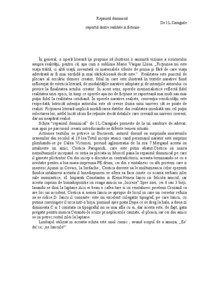 Raportul dintre realitate si fictiune. Cum se face raportul dintre fictiune si realitate la textul corigenta de mircea eliade sau la ora de istorie de marin preda funda mersi. Trimisă pe 19 martie. Caragiale repausul dominical este o operă de ficţiune în care autorul încearcă să dea iluzia realităţii prin urmare are un caracter verosimil. Cine ma poate ajuta cu o idee.
