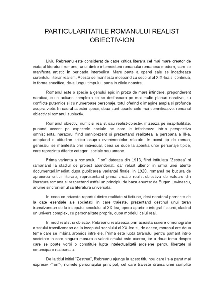 Raportul dintre fictiune si realitate in romanul ion mai jos o sa aveti mai multe rezultate pentru cautarea raportul dintre fictiune si realitate in romanul ion. Care este raporul dintre realitate fictiune. Un prim argument in evidentierea raportului realitate fictiune il constituie insasi tema nuvelei evocarea in maniera fictiva a unei perioade din istoria moldovei de la sfarsitul secolului al xvi lea. Puteti gasi foarte multe referate accesand categoriile din partea dreapta despre raportul dintre fictiune si realitate in romanul ion.