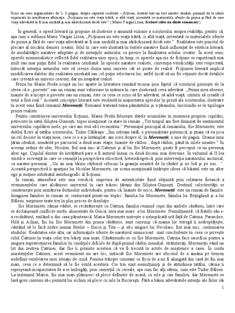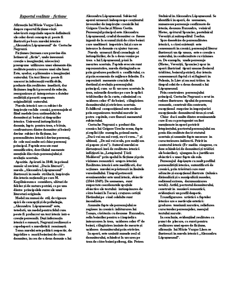 Textul literar este o lucrare scrisă în care autorul îşi creează propriul univers imaginar prin intermediul căruia îşi transmite gândurile sentimentele ideile. Mario vargas llosa scrisori către un tânăr romancier. Cea de a doua domnie a lui alexandru lapusneanul si luptele cu boierii pentru impunerea autoritatii domnesti. Ficțiunea nu este viața trăită ci altă viață inventată cu materialele oferite de prima.
