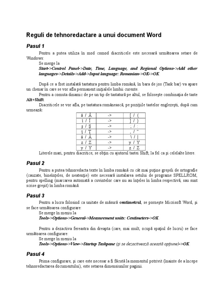 Acest lucru vă scuteşte de probleme la imprimare datorită diferenţelor de lungime şi lăţime între formatul a4 şi letter formatul implicit al word ului. Pentru a obţine un document de calitate este. Editoare de texte şi reguli generale de tehnoredactare. Reguli de tehnoredactare a unui document word.