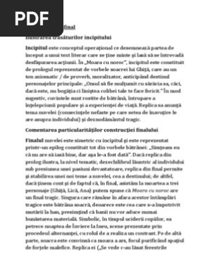 Varianta 11 relatia dintre incipit si final intr o nuvela. Nuvela moara cu noroc de ioan slavici este construită în mod simetric astfel că este foarte ușoră să evidențiezi relația dintre incipit și final. Varianta 11 relatia dintre incipit si final intr o nuvela. Relatia dintre incipit si final comentarii literatura romana definitivat educatori si invatatori moara cu noroc de ioan slavici comentariu literarioan slavici este unul dintre cei patru mari clasici ai literaturii române afirmându se ca deschizător de drumuri prin crearea romanului realist obiectiv mara și prin integrarea elementelor de analiză psihologică în scrierile sale acestea sunt dominate de conflicte puternice cum ar fi patima banului discrepanțele sociale.