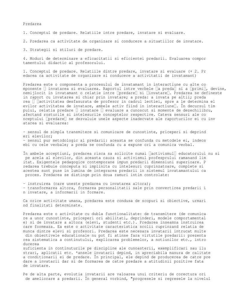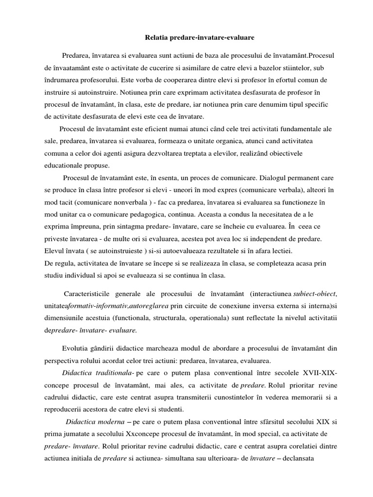 Didactica traditionala separa actul predarii si invatarii de actul. Predarea singura oricat de buna ar fi nu conduce in mod automat de la sine la efectele asteptate. Procesul de invatamant ca r e lati e intre predare inv a tare evaluare procesul de invatamant este un proces de predare invatare evaluare a activitatii didactice. Relatia predare invatare evaluare.