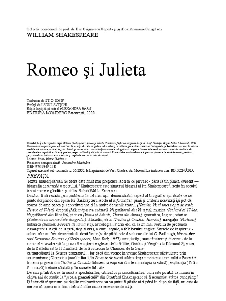 Magazinul online din republica moldova include o colecţie foarte mare de titluri gratuite mai precis 426. Romeo si julieta william shakespeare 0 0 10 0 voturi nota ta. Din punct de vedere dramatic si tematic principalele imagini din piesa sunt lumina si intunericul. William shakespeare 1564 1616 dramaturg si poet englez este unul dintre numele cele mai importante al literaturii universale.