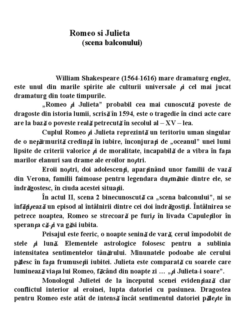 Romeo si julieta comentariu. A scris comedii drame și tragedii comedia eroilor hamlet regele lear etc. Nu mi ai lasat macar o picatura. Julieta este anunțată de mama sa că tânărul paris dorește să o ia în căsătorie dar ea se oripilează amintindu și că ultima oară când i au luat temperatura lui paris acesta avea peste 37 3 deși părea mai mult asimptomatic. N a mai avut rabdare otravit.