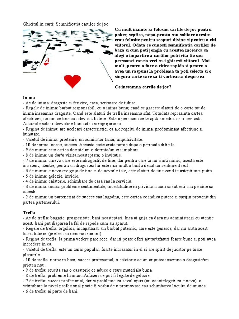 Foarte multi dintre noi isi doresc sa isi cunoasca viitorul sa stie daca vine o perioada grea sau nu in viata sa cunoasca daca se afla in relatia potrivita daca sunt pe drumul bun din punct de vedere profesional sau daca vor castiga la cazino. Descoperiti semnificatiile cartilor de tarot ale celor care se incadreaza in categoria arcana minora. Tarot online semnificatia cartilor de tarot in dragoste. Atributiile si personalitatea cartilor de curta difera in functie de suita de care apartin.