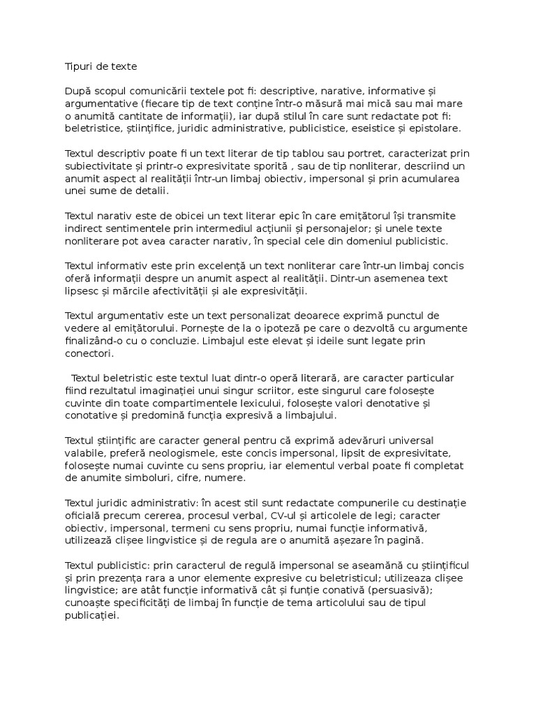 Descriptive narative informative și argumentative fiecare tip de text conține într o măsură mai mică sau mai mare o anumită cantitate de informații iar după stilul în care sunt redactate pot fi. Am realizat un ppt cu diverse tipuri de texte nonliterare. După scopul comunicării textele pot fi. Elevii vor primi fisele cu sarcinile de lucru si textele suport pentru fiecare grupa.