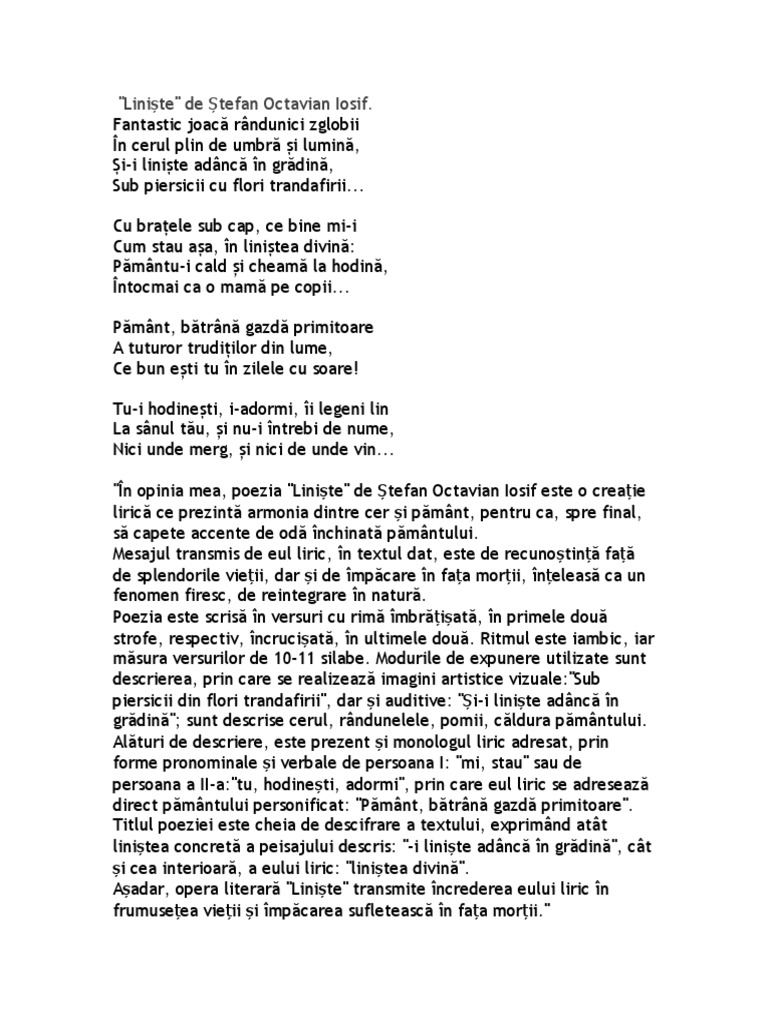 De ștefan octavian iosif stefan octavian iosif. Din inițiativa lui emil gârleanu șt o. El povesteste despre moarte foi pe care le goneste ca pe un roi ca pe un convoi de fluturi morti si ti le arunca n geam. Era fiul lui ștefan iosif directorul gimnaziului român din șcheii brașovului și al paraschivei fiica preotului mihălțeanu și nepoata lui g.