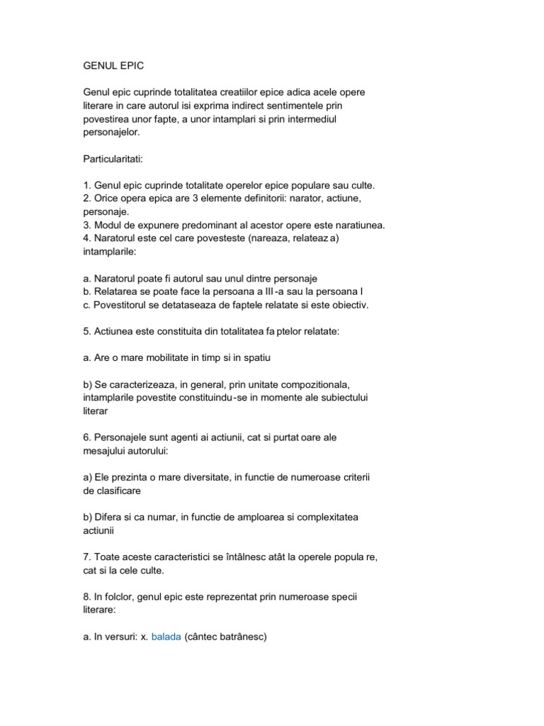 Genul epic genul epic cuprinde totalitatea creatiilor epice adica acele opereliterare in care autorul isi exprima indirect sentimentele prinpovestirea unor fapte a unor intamplari si prin intermediulpersonajelor particularitati 1.