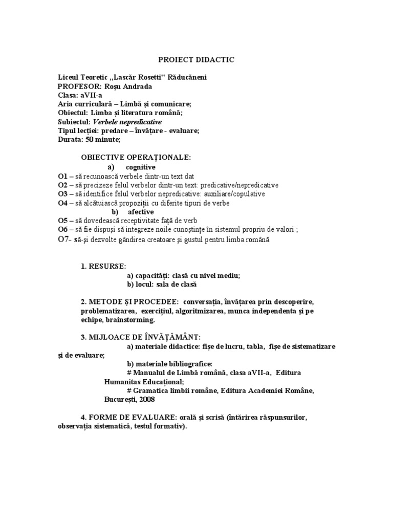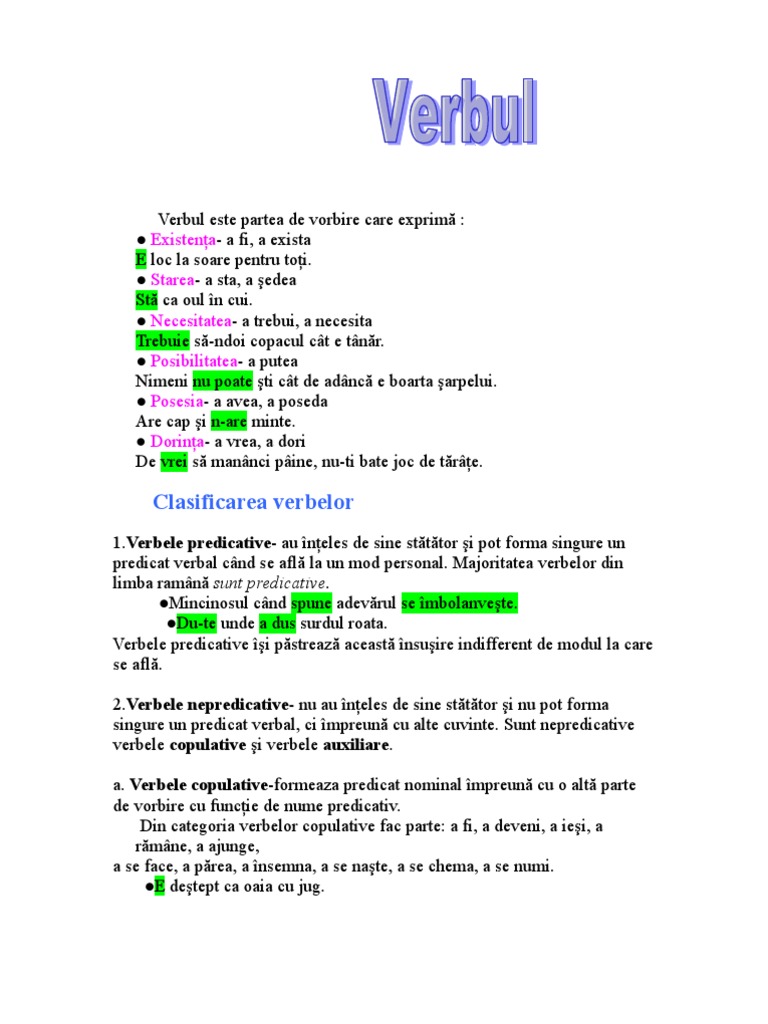 Verbele predicative au înțeles de sine stătător adică pot spune ceva despre subiect pot forma singure predicatul când se află la un mod personal. Sunt verbe care nu pot forma singure predicatul unei propoziții deci nu au un înțeles de sine stătător și au nevoie de un n u m e p r e d i c a t i v. Cele mai frecvente verbe copulative sunt. Articole recomandate de comunitatea suntparinte ro.