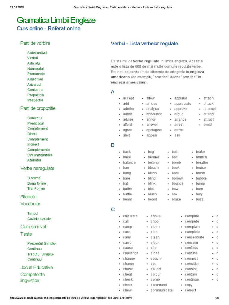 Lista verbelor neregulate in limba engleza verbele neregulate in engleza http. Va prezentăm în acest site o lista completă de verbe neregulate în engleză mai exact 200 de verbe neregulate inclusiv declinarile lor infinitiv trecutul simplu și participiu trecut că și pronunția audio a acestor verbe. Rezolvari prezentul si trecutul continuu. Mijloc de transport public en.