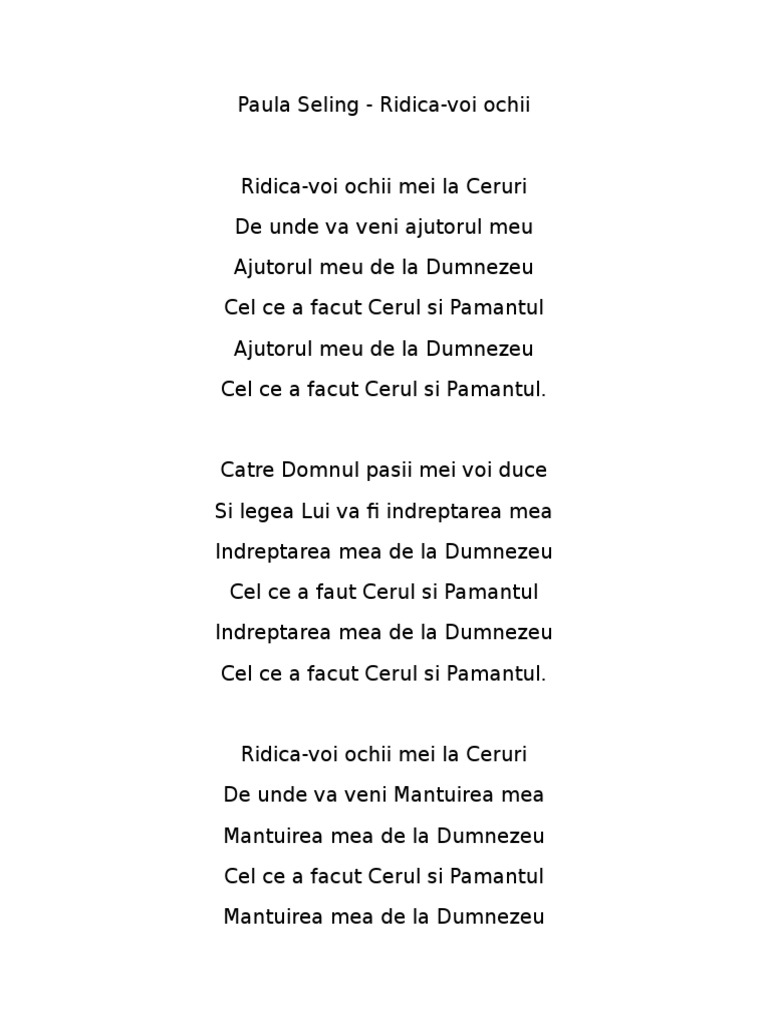 Stefan hrusca versuri cerul si pamantul cerul si pamantul cerul si pamantul in cantec rasuna ingeri si oameni ingeri si oameni canta impreuna refren. Cerul și pământul ne spune cuvântul vor pieri un lucru rămâne peste timp și lume pe vecii ne a fost dăruită cu sânge sfințită la calvar n are asemănare sub întregul soare sau hotar. Versuri colinde cerul și pământul. Trece vor graiurile universului se va stinge n tarana seara pamantului.