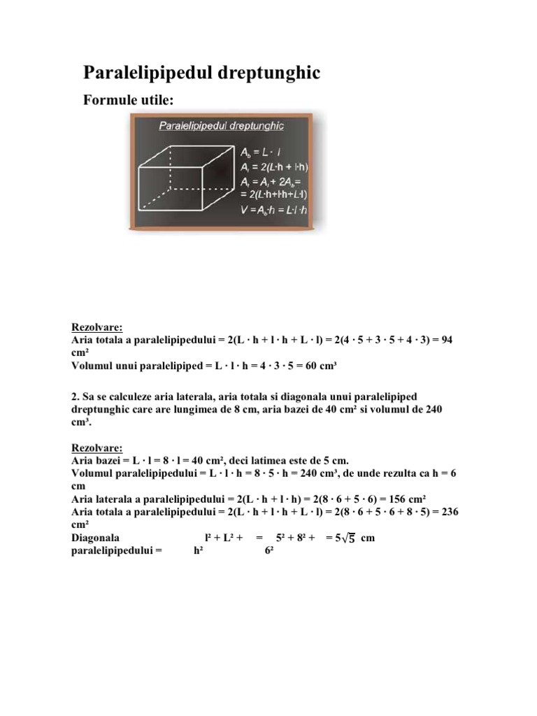 Volumul paralelipipedului l l h 5 3 h 90 cm deci h 6 cm. At 2 3. Lungime lățime și înălțime și fiecare obiect corp ocupă un anumit loc în spațiu. Aceasta lectie figureaza in programa examenului de evaluare nationala clasa a viii a.